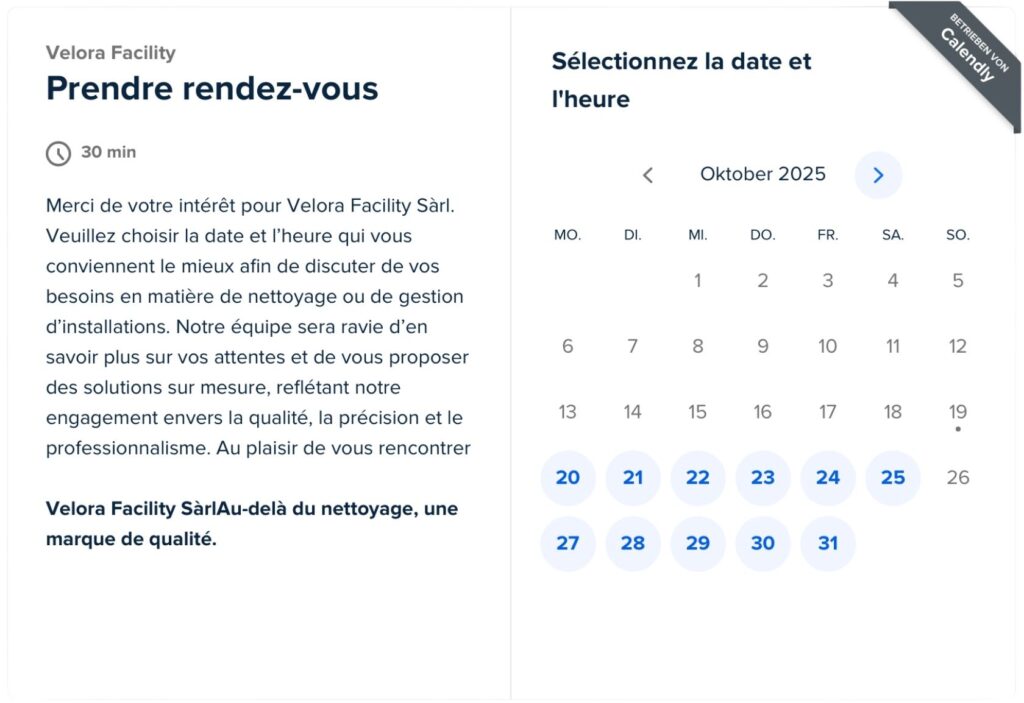 Velora est une société suisse de gestion et d’entretien de sites pour particuliers et entreprises. Notre mission est claire : préserver votre standard, votre confort et votre image avec un travail impeccable et sans friction.